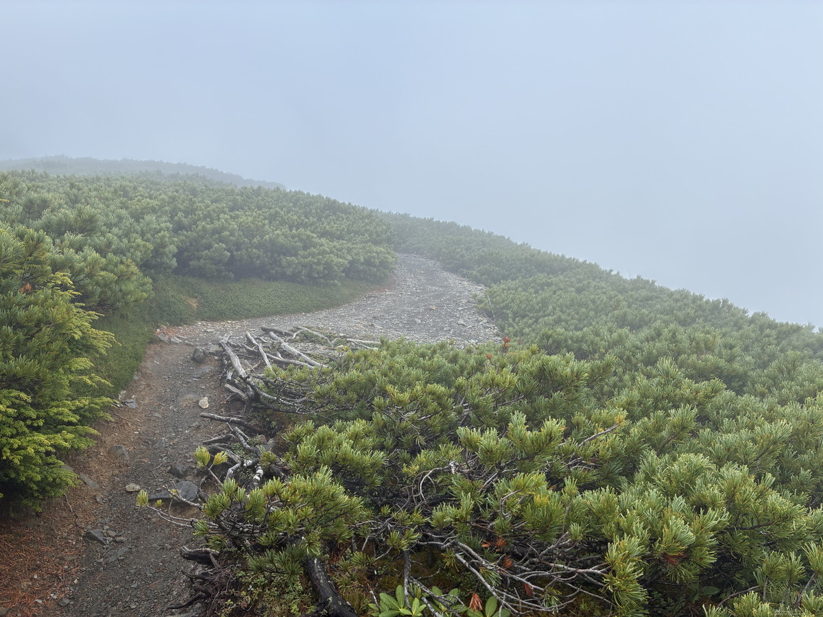 ハイマツの中を進みます。雷鳥さんが出てきそうな雰囲気ですが、今回も会えませんでした。