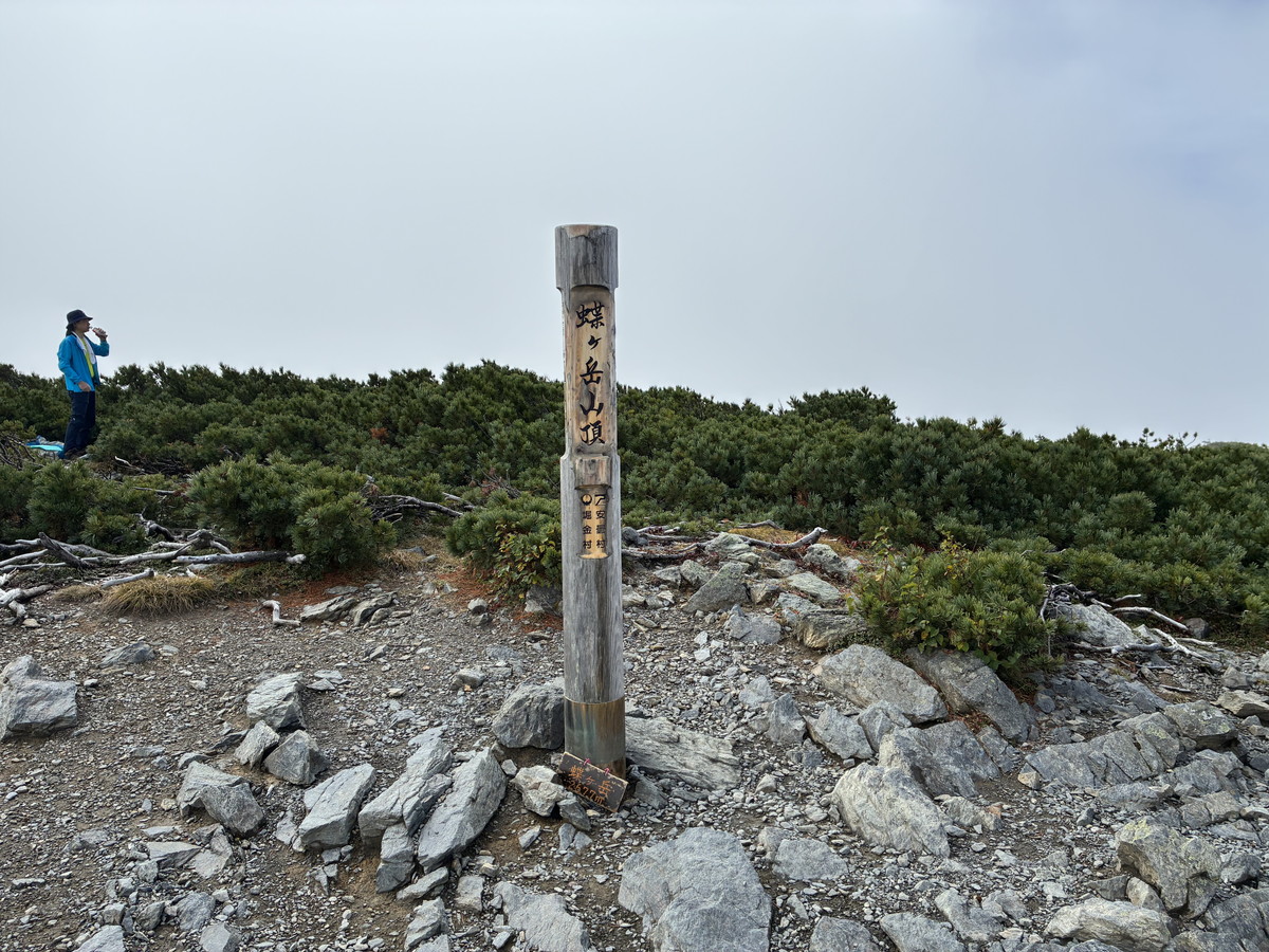 蝶ヶ岳山頂。登山口から4時間弱かかりました。