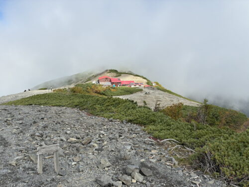 蝶ヶ岳ヒュッテ。今度は泊まってみたいですね。