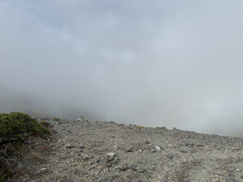 Youtubeなどを見るとこの先に絶景が広がっているはずなのですが、すべて雲の中です。